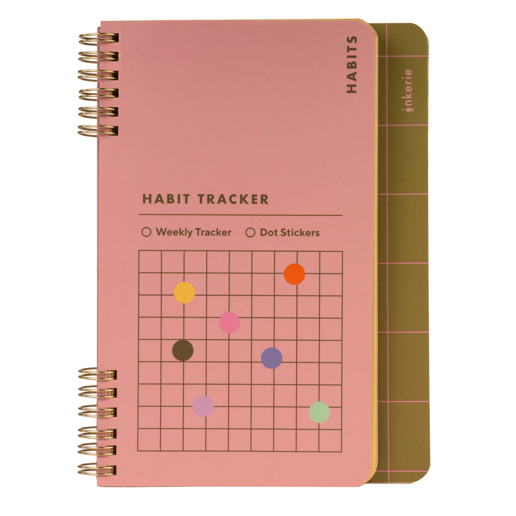 Use colorful stickers to record your goals and habits in style! Spiral-bound notebook includes: 54 weeks/pages, one section with to-do check off lists and goal trackers, and another section with with daily and weekly habit trackers and 1200 dot stickers that help identify and mark progress!