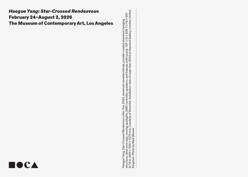 Limited-edition postcard produced for the Haegue Yang: Star-Crossed Rendezvous exhibition at The Museum of Contemporary Art, Los Angeles, Los Angeles, February 24 – August 2, 2026.