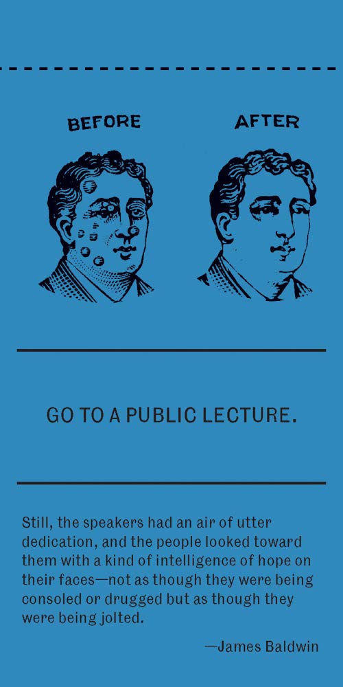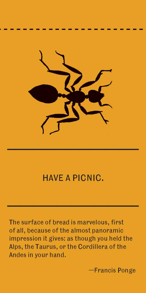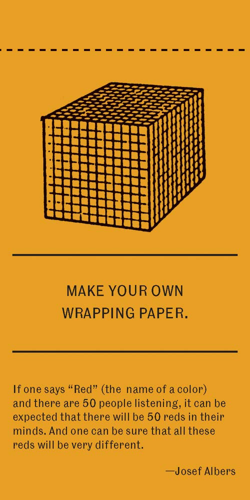 Featuring the kind of ingenious, charming design you expect from a Jason Fulford and Tamara Shopsin project, Offline Activities is designed as a coupon book with tear-out pages, with one inspirational suggestion and quote per page. You are encouraged to physically do the activity and rip the page out of the book as proof. If you do one offline activity per week, the book will last a year. Offline Activities is a delightfully analog, pleasantly practical guide to shaking up your offscreen life.