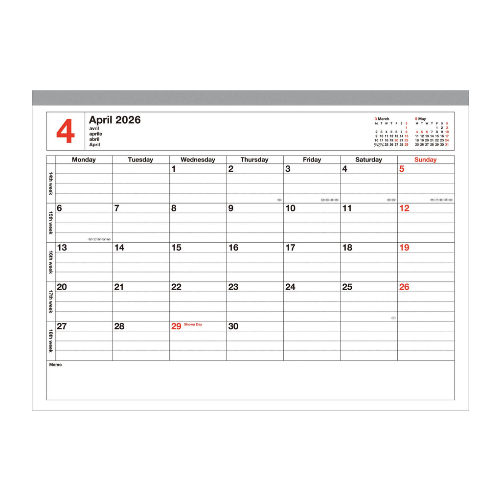 - Calendar + 16 memo pages