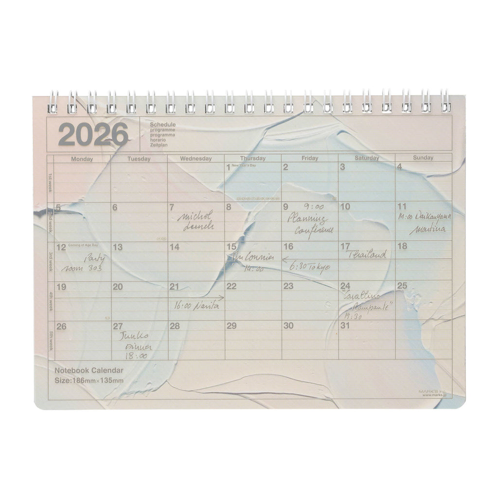 This popular notebook calendar is made with high-quality cardstock for a smooth and comfortable writing experience. Its compact and lightweight design makes it easy to carry anywhere. With a clean layout that is easy to read and plenty of space for notes, you can quickly check your monthly schedule at a glance. The B6 size is perfect for keeping on your desk or carrying in a small bag. Suitable for both students and professionals, it works well for personal planning or work s...
