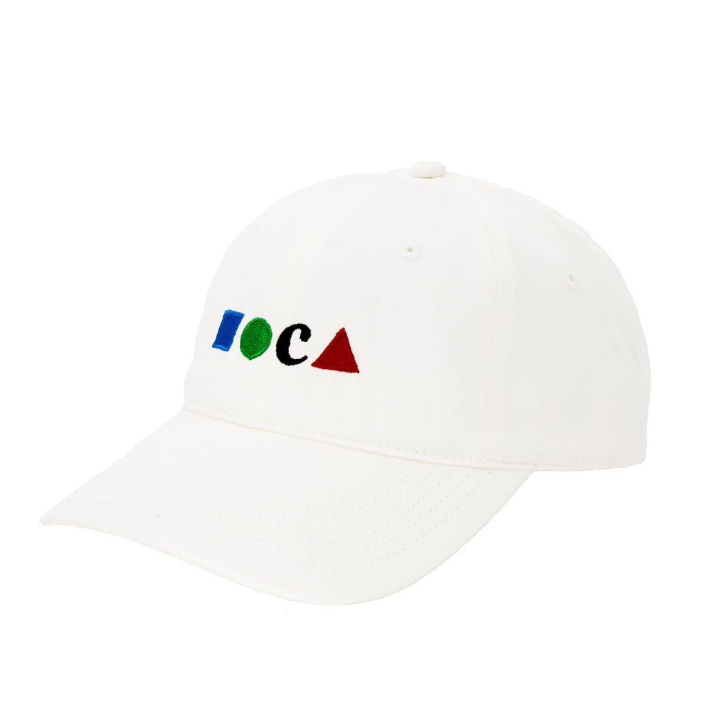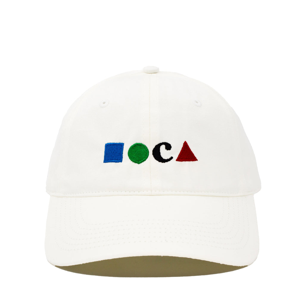 Wear MOCA with this White premium cotton baseball hat embroidered with our classic four-color MOCA logo.
