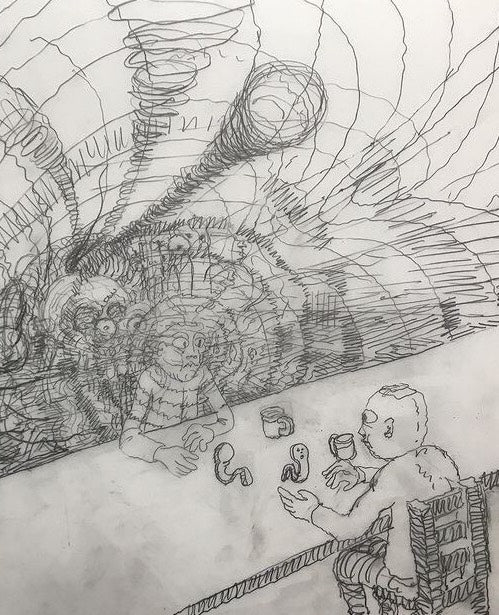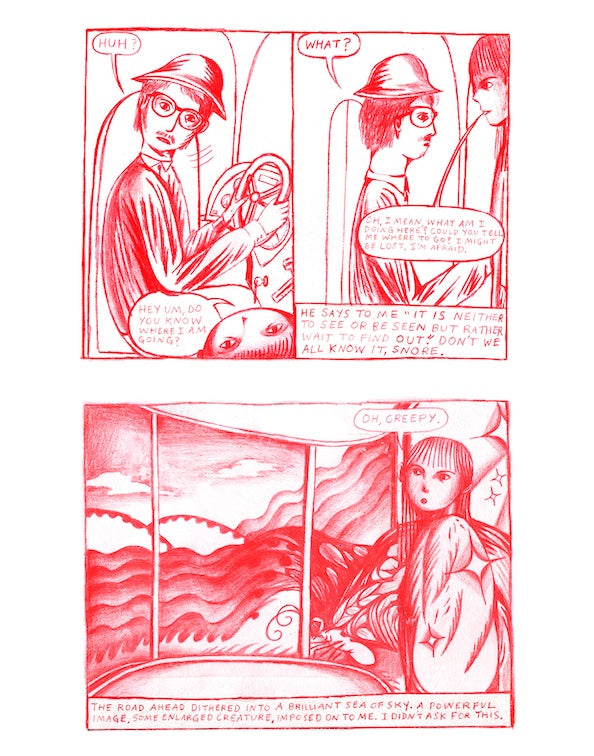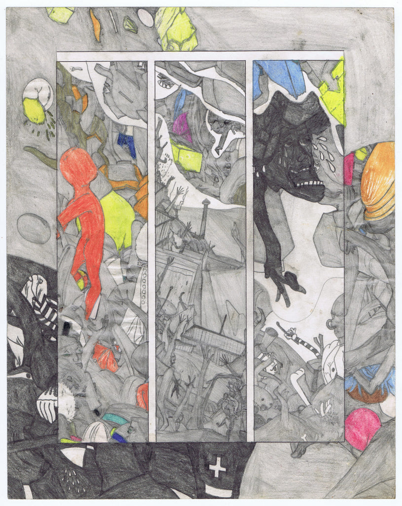 Alive Outside collects previously unpublished work from an international cast of artists, including: Aapo Rapi, Aaron Rossner, Andy Cahill, Angela Fanche, Becchi Ayumi, Dongery, Doug Allen, Dylan Jones, Christian Schumann, Eden Veaudry, J Bradley Johnson, Jordan Rae, Joe Grillo, Joe Hale, Julie Doucet, Julien Ceccaldi, Kari Cholnoky, Leomi Sadler, Lilli Carre, Lukas Weidinger, Marc Bell, Mark Connery, Matt Lock, Poncili Creation, Roman Muradov, Ron Rege Jr., Shoboshobo, Susan Te Kahurangi King, Theo Ellsworth, and Trenton Doyle Hancock.